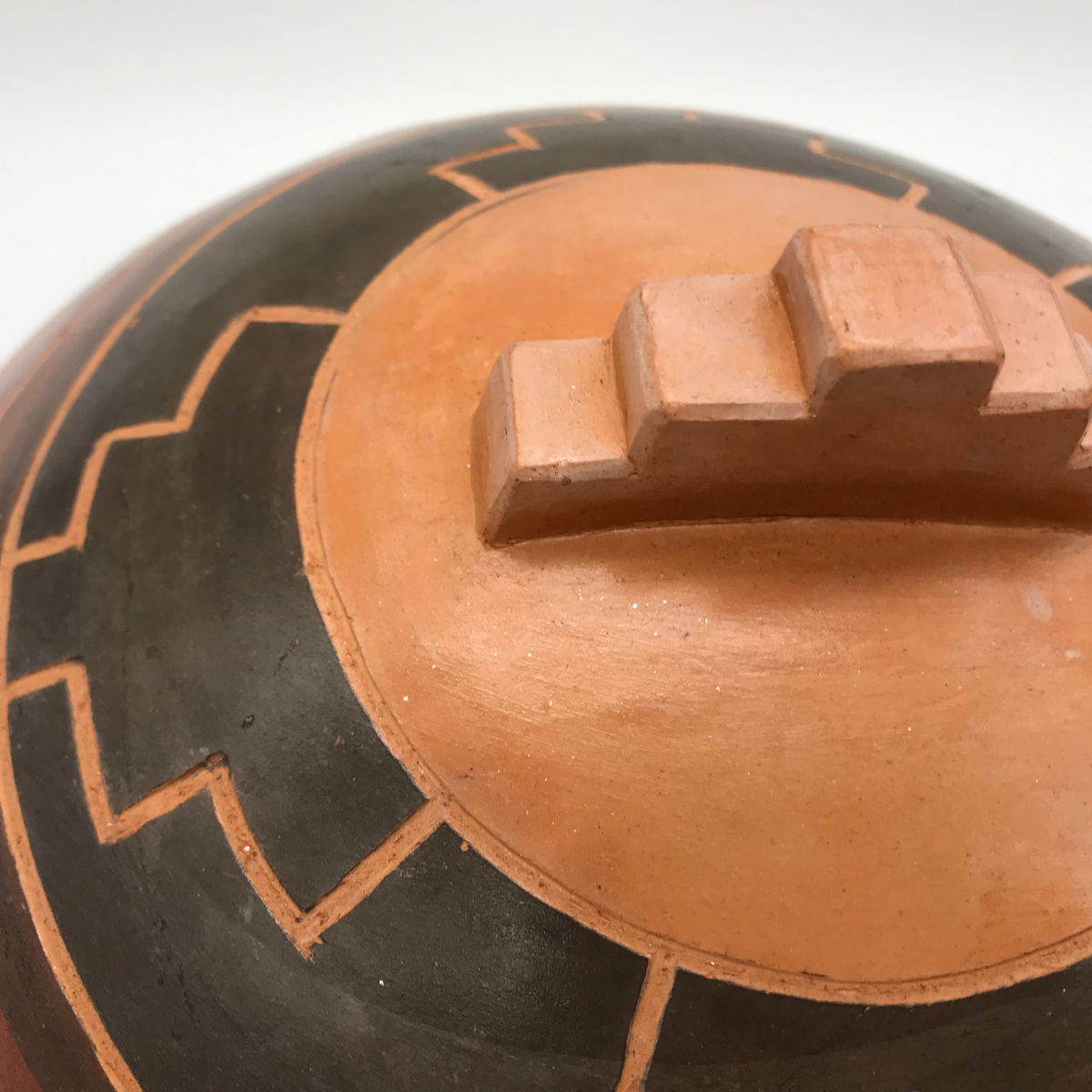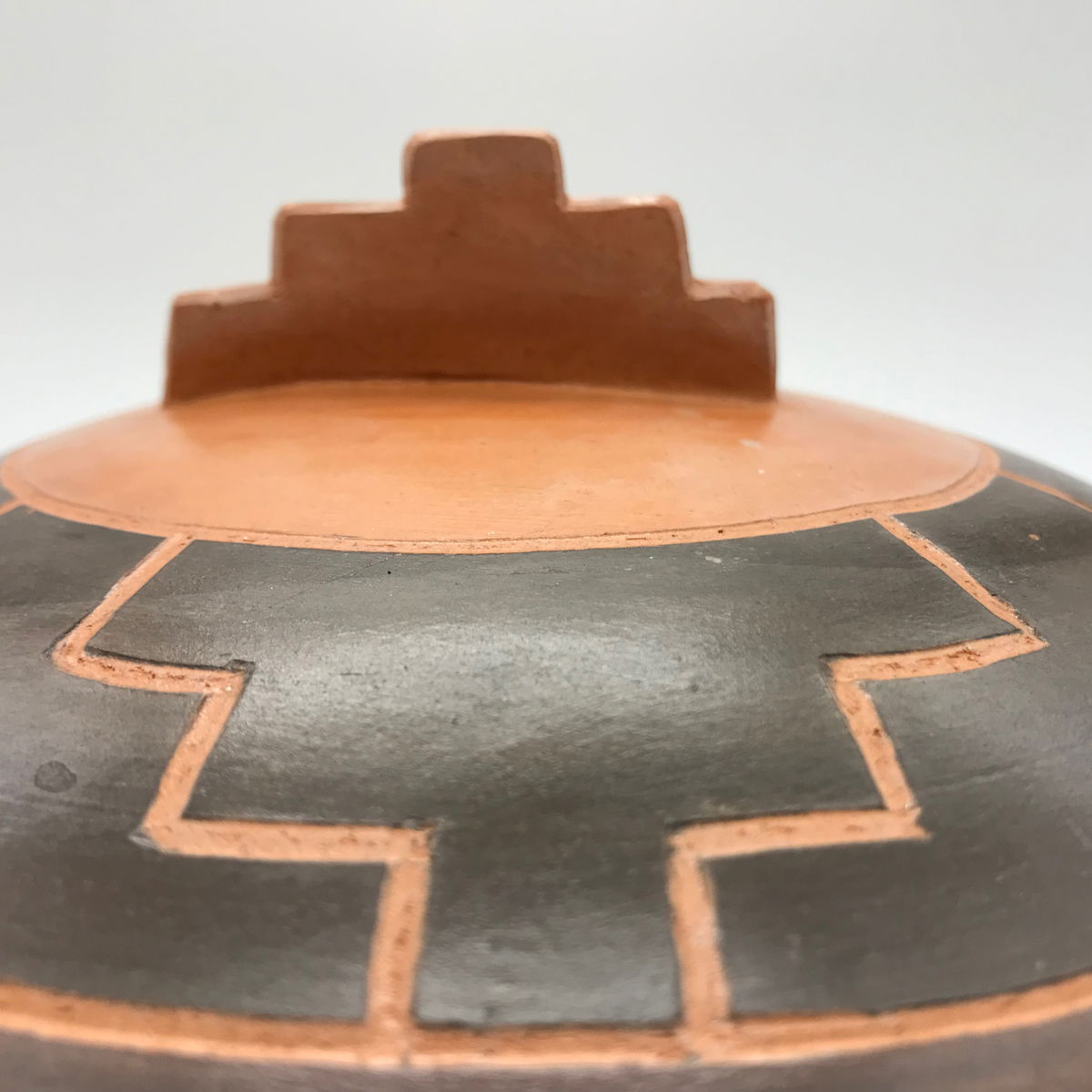 El asa en forma de media chacana sugiere un gesto de apertura, como si el símbolo no se cerrara del todo para permitir el paso, el movimiento y la transformación. No es una estructura rígida, sino una fuerza en devenir, activa y disponible.